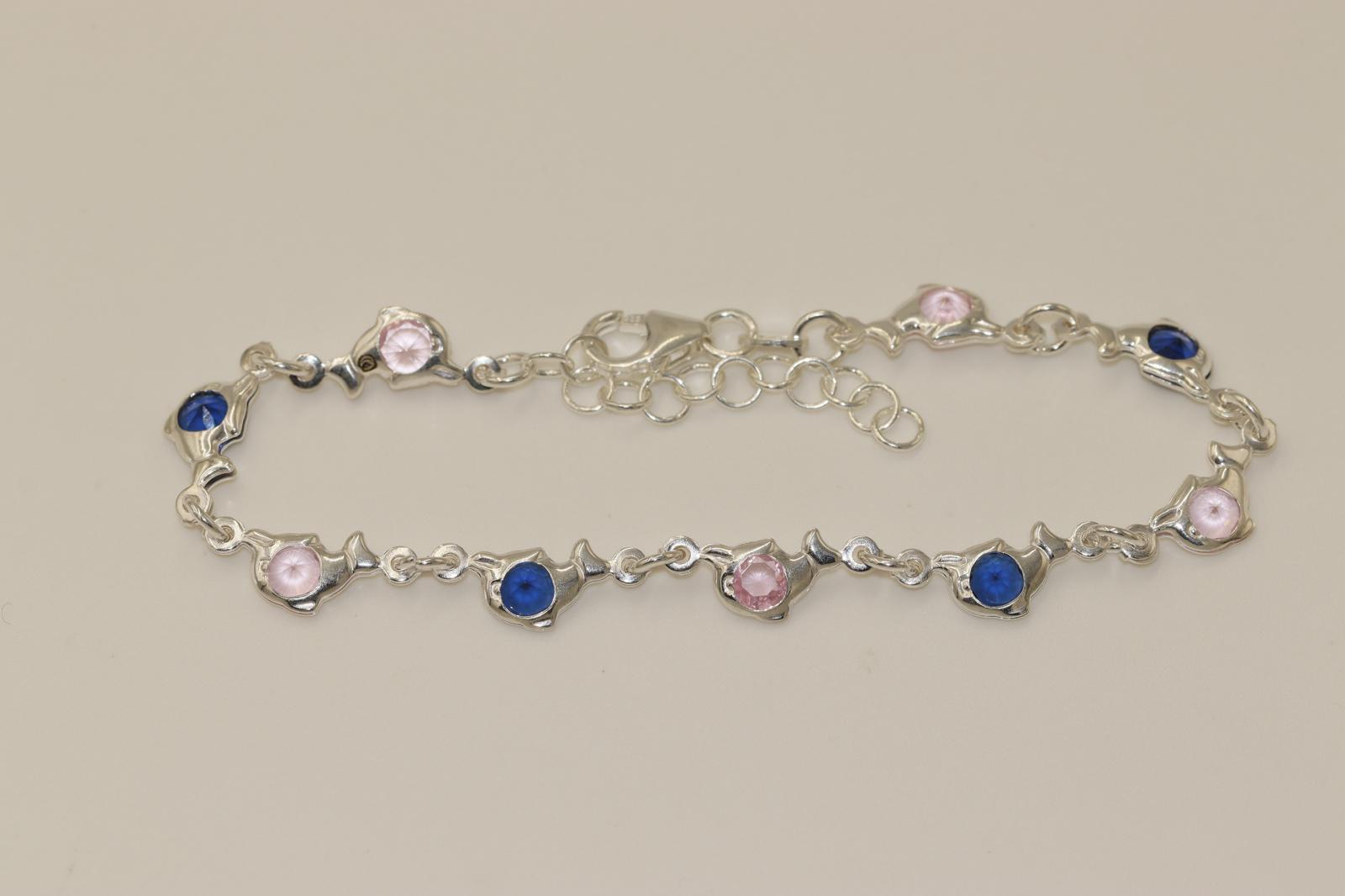 Home Damen Armband Silber 925 Damen Armband Silber 925, Delphin-Rosa-Blau-Zirkonia, Länge: 20cm, Verstellbar-22cm, A33