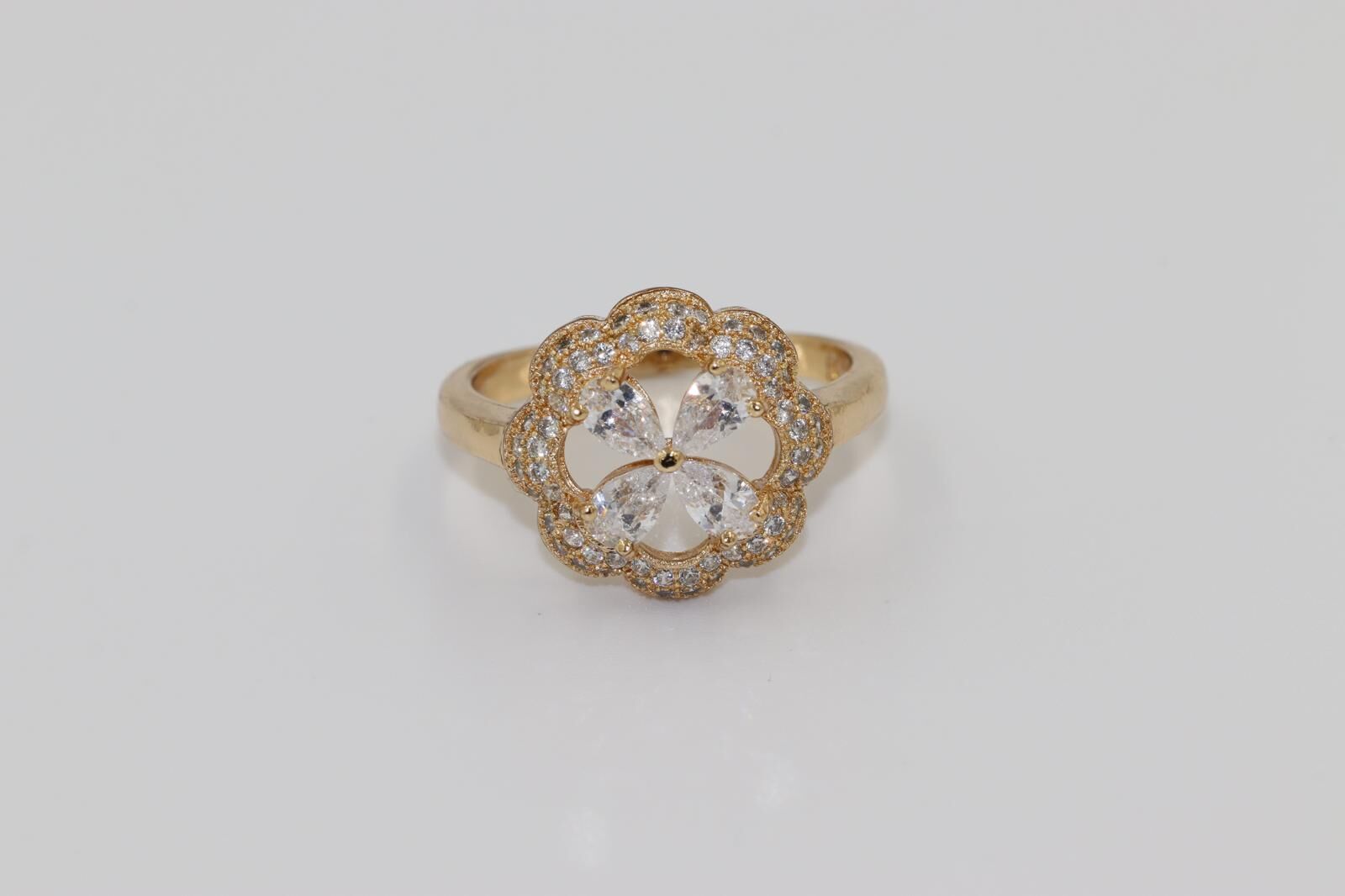 Damen Fingerringe, Edelstahl, Vergoldet, Wasserfest, Zirkonia-Weiss, Grösse 57, A180