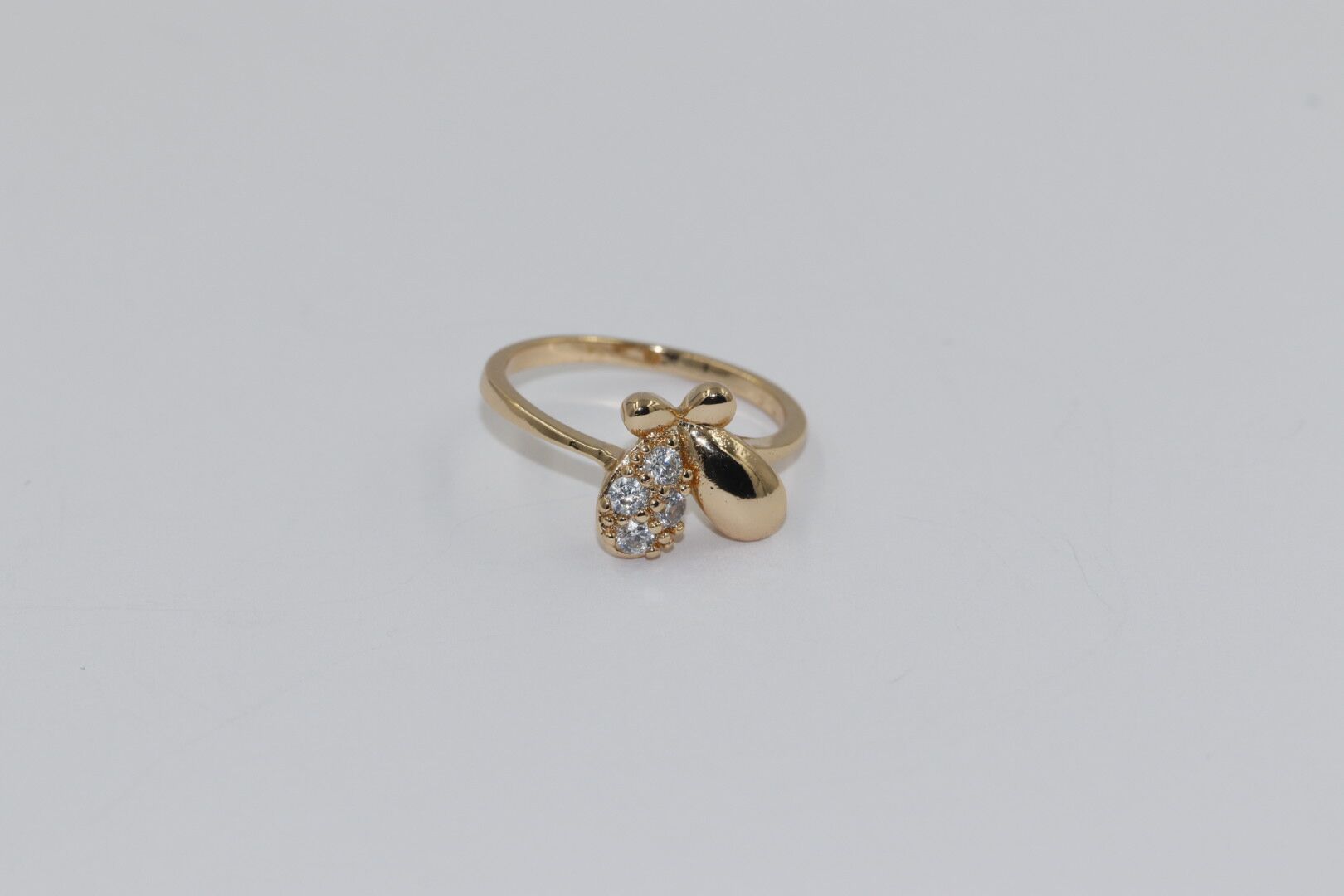 Damen Fingerringe, Edelstahl, Vergoldet, Zirkonia-Weiss, Blatt-Ring, Grösse 46, A7