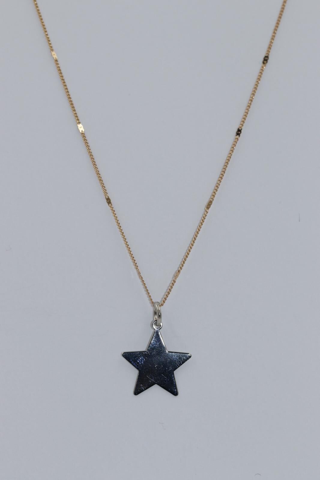 Damen Halskette Edelstahl-Vergoldet, Wasserfest, Lange: 44cm, Mit Anhänger Silber-Weisser-Sterne, A13